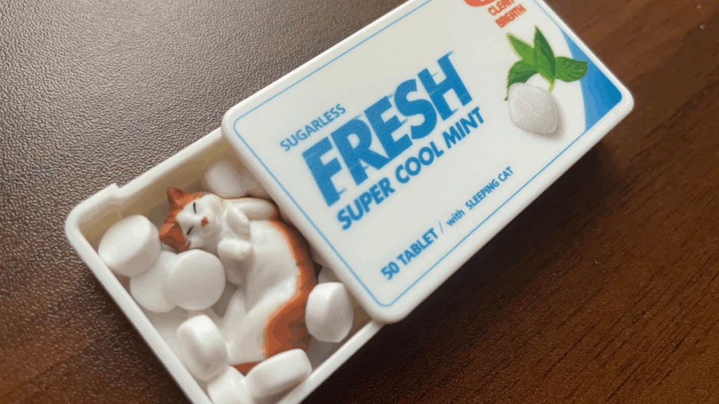 ミント好きとしては、できればミニチュアミントタブレットねこがほしい!とガチャしてみたところ……